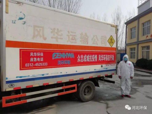 河北風華環保科技股份有限公司積極響應河北省政府和雄安新區管委會的疫情防控要求,2020年2月5日,風華環保公司派出精干力量,駐守雄安,服務新區,保障雄安新區內醫療機構產生的醫療廢物當天產生、當天轉運、規范處置,馳援雄安新區重點項目全面復工。